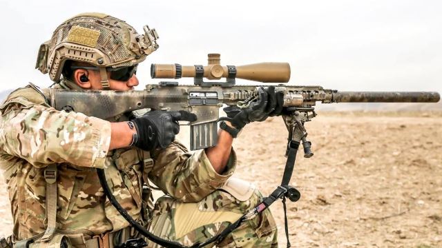 Fusil de Francotirador M110 SAAS (Semi Automatic Sniper System) de 7.62 mm x 51 mm. Es un derivado del SR-25 de Knight’s Armamento Co.