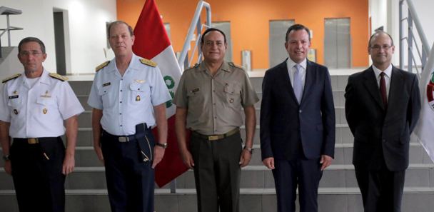 ·Almirante Edmundo Deville (Comandante General de la Marina), General del Aire Dante Arevalo Abate (Comandante General de la Fuerza Aerea), General de Ejército Ronald Hurtado Jimenez (Comandante General del Ejercito), Jakke Valakivi Alvarez (Ministro de Defensa) y Julio de la Puente de la Borda (Vice-Ministro de Recursos para la Defensa).