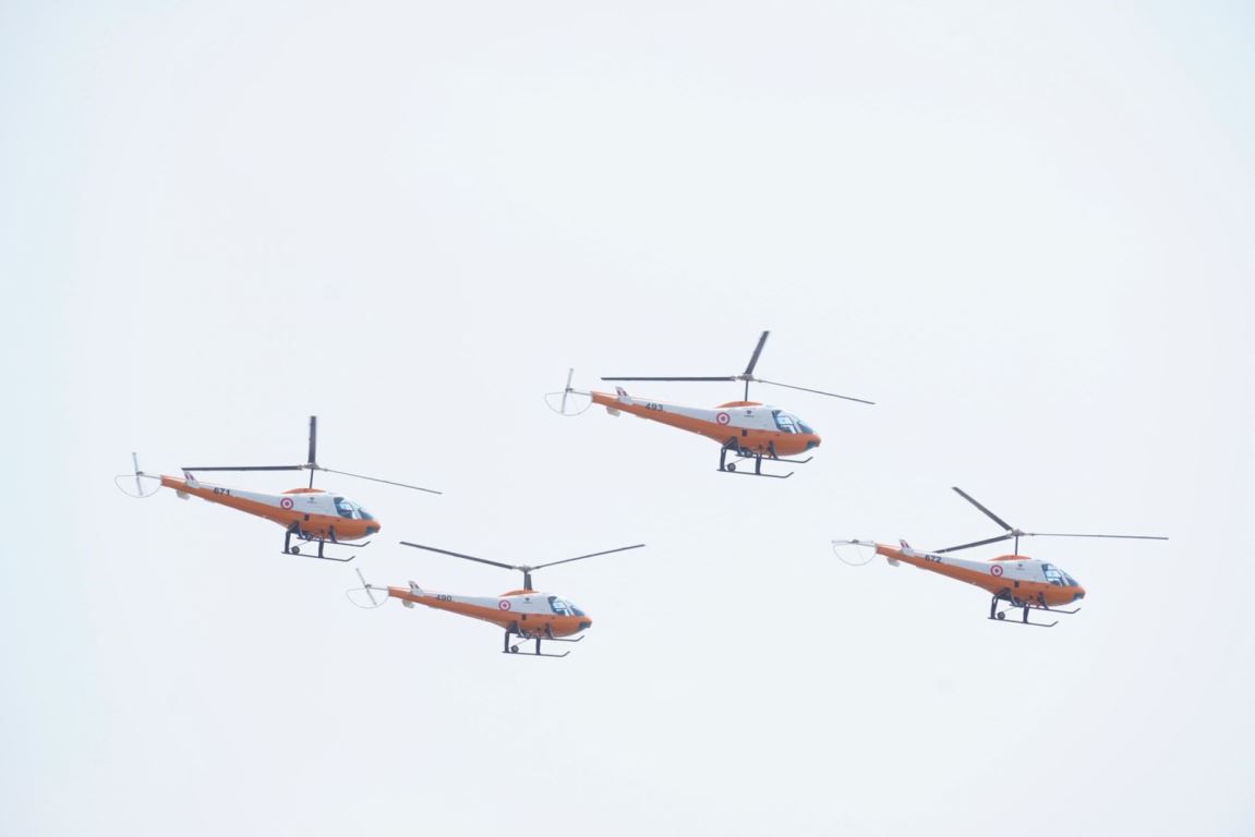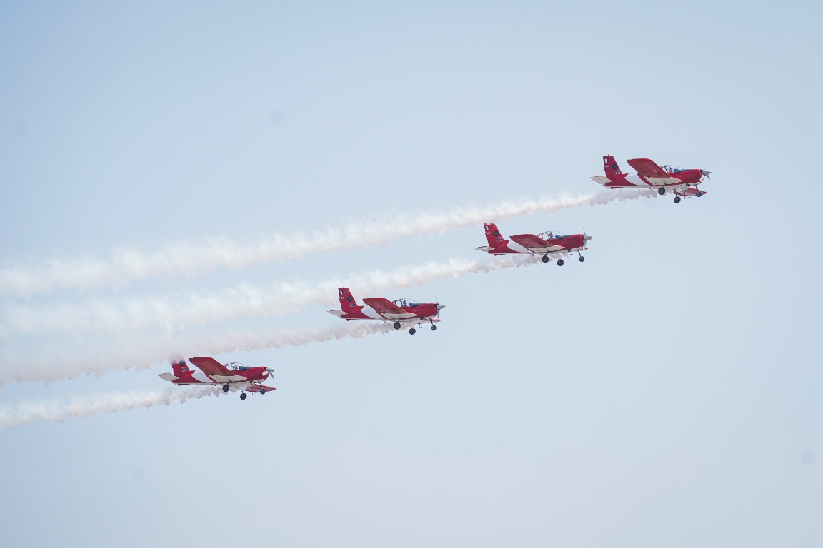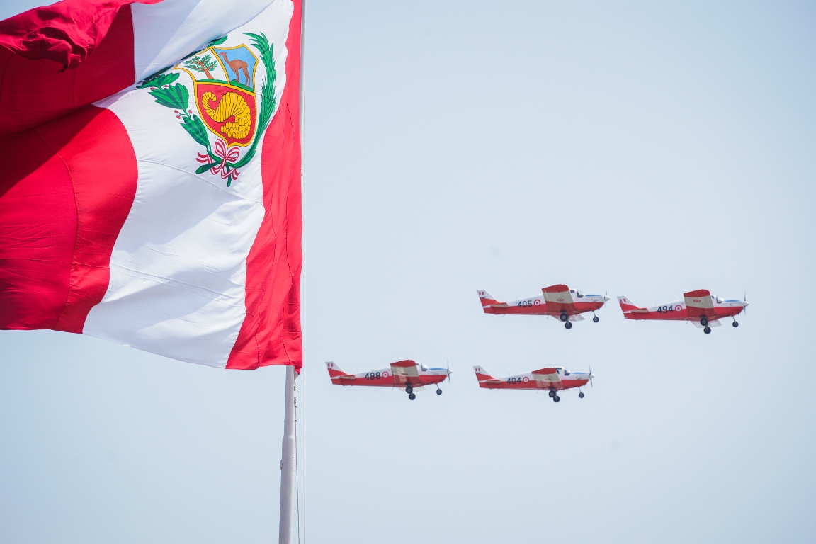 El despliegue de medios aéreos tras la ceremonia fue modesto, observándose el paso de los Moravan Zlin Z-242L de la Escuadrilla Acrobática “Bicolor” - a cargo del Escuadrón Aéreo N° 611, unidad dependiente del Grupo Aéreo N° 6 ubicado en la Base Aérea Pedro Ruiz Gallo (Chiclayo) – y los Zenair CH-2000 Alarus (ensamblados íntegramente en SEMAN) y Enstrom F-280FX Shark de la Escuela de Formación de Oficiales Pilotos (EFOPI).