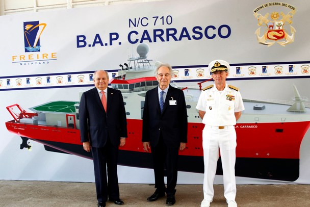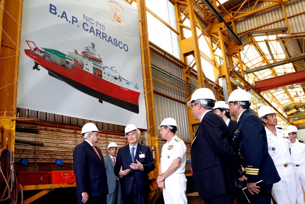 (defensa.com) El Presidente del Consejo de Ministros,Pedro Cateriano Bellido, y el Comandante General de la Marina, Almirante Edmundo Deville del Campo, visitaron los Astilleros Construcciones Navales P. Freire, ubicado en Vigo (España), a fin de supervisar los avances en la construcción del Buque Oceanográfico Polar BAP Carrasco. El astillero español fue seleccionado en 2014 para suministrar un Buque Oceanográfico Polar de 5.000 a 6.000 toneladas para la Marina de Guerra del Perú por un monto aproximado de 79,2 millones de Euros. La adquisición se enmarcó en el denominado “Programa de Construcción de un Buque Oceanográfico que contribuya al mejoramiento de los Servicios de Investigación Oceanográfica de la Marina de Guerra del Perú en el dominio marítimo y la Antártida” (Código SNIP Nº 269457).