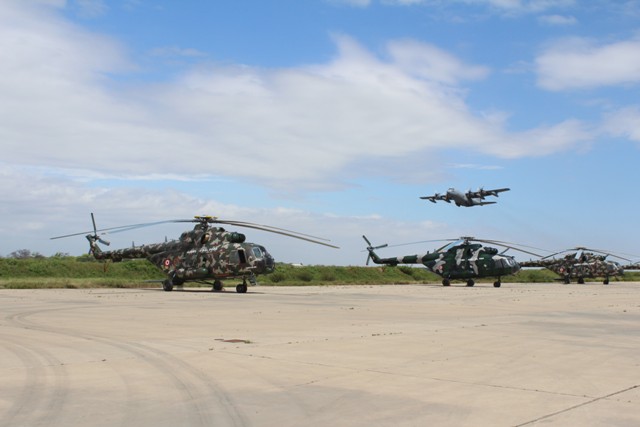 Por su parte, el Grupo Aéreo Nº 3, unidad de la Fuerza Aérea especializada en operación con helicópteros, aportó 1 Bell 212, 1 Mi-8MTV, 2 Mi-17-1B y 1 Mi-171Sh Hip H. Además, opero los 4 Mi-171Sh-P de la Aviación del Ejército que le fueron entregados, en calidad de préstamo, a fines de marzo. La Aviación del Ejército desplego a su vez 4 Mi-17-1B (uno de los cuales sufrio un accidente mientras realizaba un vuelo de transporte de ayuda humanitaria) y 5 Mi-171Sh-P Hip H, así como 2 An-32B Cline y 1 Beechcraft 1900D, en tanto que la Comandancia de Aviación Naval puso a disposición 1 Beechcraft B-200 Super King Air y 3 Fokker: 1 F-50 y 2 F-60UTI, además de 1 AB-412SP y 1 UH-3H Sea King.