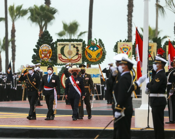 A su turno, el Presidente Pedro Castillo - que instó a la Marina de Guerra “a seguir con su vocación de servicio a la patria, con compromiso y dedicación, teniendo como ejemplo Miguel Grau Seminario, en favor del engrandecimiento del país” - destacó su aporte al desarrollo de la nación señalando que “este desarrollo debe estar salvaguardado con seguridad de nuestro mar territorial, provista por el aporte ejemplar de nuestra Marina de Guerra del Perú. Sin seguridad no hay desarrollo, compatriotas, para establecer una sociedad democrática y justa para todos los peruanos”.