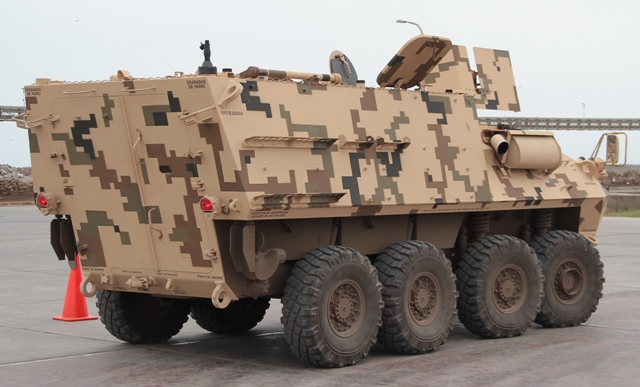 Los LAV II (8x8) “Caimán” son de la versión APC (Armored Personel Carrier) y tienen una longitud de 6,5 m, ancho de 2,62 y altura de 2,69 m. El peso en combate es de 13,3 ton. Están diseñados para transportar 10 efectivos (2 de tripulación y 8 infantes). La propulsión está a cargo de un motor diesel Cummings 6.7L de 300 HP, siendo su velocidad máxima de 100 km/h en carretera y de 10 km/h en operaciones anfibias. El alcance es de 640 km. El armamento de 24 de los LAV II (8x8) comprende una ametralladora M-2HB QCB de 12.7 mm. con 100 proyectiles para uso inmediato, mientras que los 8 restantes disponen de un lanzagranadas MK-19 de 40 mm. con 32 granadas. Además, disponen – a efectos de protección y ocultamiento - de 8 lanzagranadas de humo de 66 mm. (Alejo Marchessini, Corresponsal de Grupo Edefa en Lima).