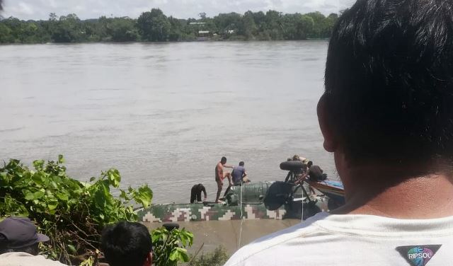 El Mi-171Sh-P semisumergido en el rio Vilcanota, frente a la comunidad nativa de Miaria, Distrito de Megantoni (La Convención, Cuzco) en el límite con la Región Ucayali.