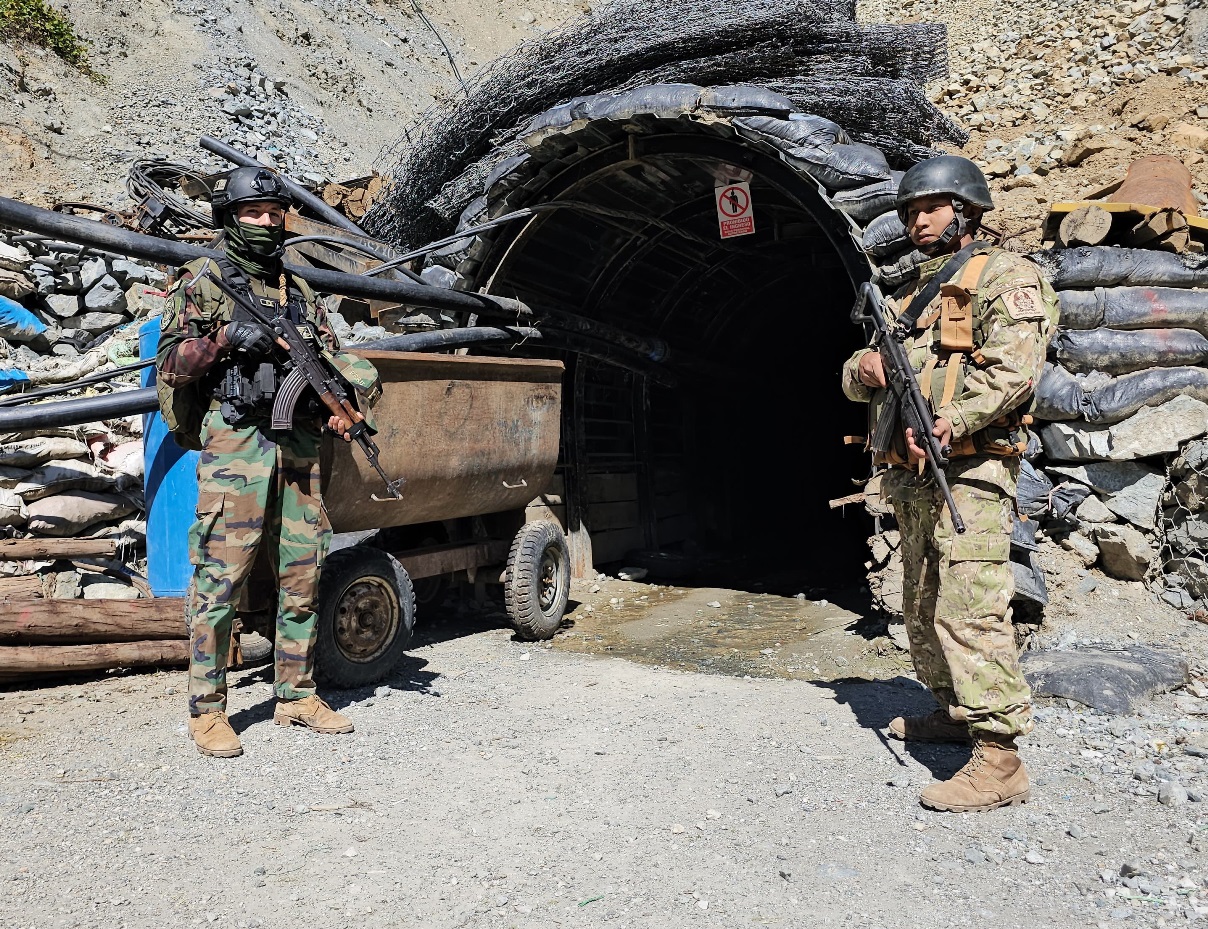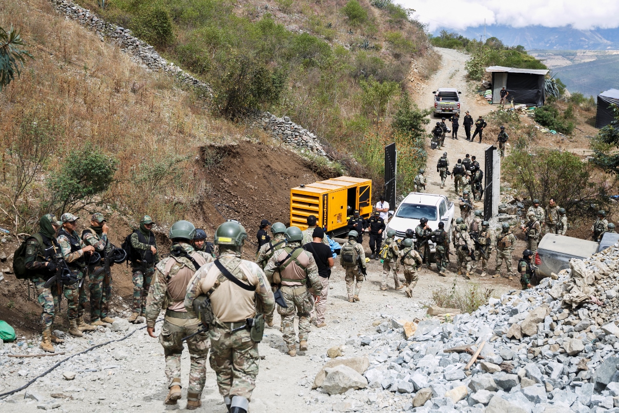Dos efectivos del CUPAZ custodiando la entrada a una bocamina durante la Operación “Ruminaki”, mediante la cual se desarticulo a la organización criminal conocida como “Los Topos de Porfías”.
