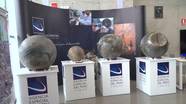 De otro lado, durante la Conferencia de Prensa CONIDA mostró las cuatro esferas metálicas caídas desde el espacio el pasado 27 de enero en diversas zonas de Azángaro (Puno). Las esferas, dos de 40.55 kg.de peso y 2.02 m. de diámetro, una de 40.65 kg. y 2.04 m. y otra de 16.7 kg. y 1.25 m, son contenedores de gases de alta presión de algún cohete que se fragmentó durante su reingreso a la atmosfera. Se informó que se ha coordinado con la Cancillería para que, a través de la Oficina de las Naciones Unidas para los Asuntos del Espacio Ultraterrestre, se pueda determinar quién es el propietario de estas esferas.