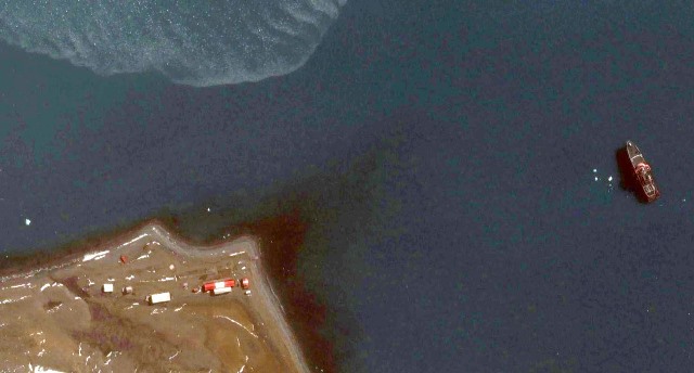 03. Estacion Cientifica “Macchu Picchu” ubicada en la Isla Rey Jorge, en la Antartida. A la derecha, se observa al Buque Oceanografico Polar BAP “Carrasco” (BOP-171).