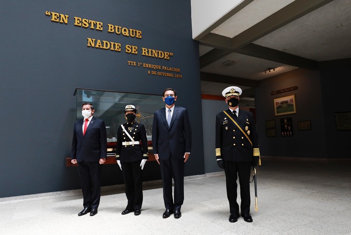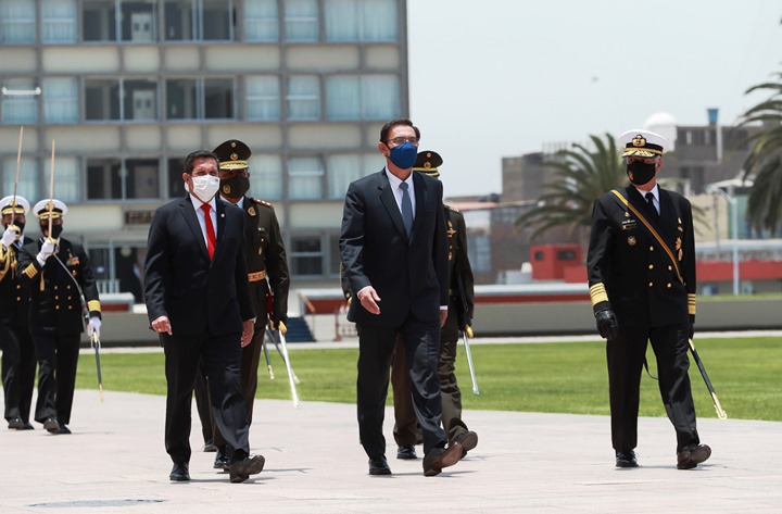 En Escuela Naval del Perú se conmemoro el 199º aniversario de la Marina de Guerra y el 141º de la gesta del Gran Almirante del Perú Miguel Grau Seminario, al mando del legendario Monitor “Huáscar”, en el Combate Naval de Angamos en 1879 durante la Guerra del Pacífico. La ceremonia, realizada de acuerdo a las normas de distanciamiento social y estrictos protocolos de seguridad impuestos por la pandemia del Covid-19, contó con la asistencia del Presidente de la República, Martin Vizcarra Cornejo, del Ministro de Defensa: General (r) Jorge Chávez Cresta y del Comandante de la Marina de Guerra del Perú: Almirante Fernando Cerdán Ruiz.