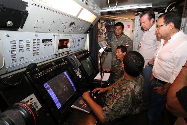 ·El Ministro de Defensa: Jakke Valakivi Alvarez y el Presidente de DEVIDA: Alberto Otarola en el Puesto de Control del Radar AN/TPS-70.
