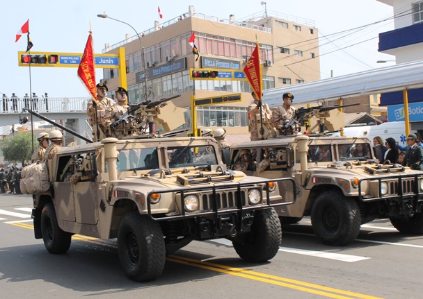 ·M-1165A1 “Humvee Special Ops” con los estandartes de los Grupos de Artilleria de Campaña N° 115 “Mayor Jorge Robledo Tirado” y N° 521 “Qhapac Ñam”.