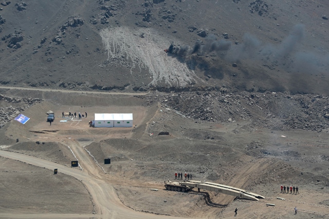 ·Ejercicio Multisectorial de Simulacro de un sismo de 8.2º. Se observa abajo a la derecha un Lanzapuentes MTU-20.