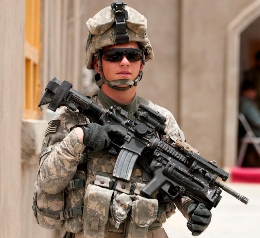 Fusil Colt M-4 de 5,56 x 45 mm, con lanzagranadas M-320 de 40 mm.