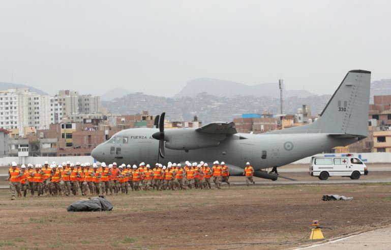 En el marco de la conmemoración de su 77º aniversario, la Fuerza Aérea del Perú hizo una demostración de sus capacidades operacionales en apoyo del Sistema Nacional de Gestión del Riesgo de Desastres (SINAGERD). Efectivos del Grupo de Fuerzas Especiales (GRUFE) y de la Brigada de Rescate de la Fuerza Aérea llevaron a cabo operaciones de evacuación y rescate en la Base Aérea de Las Palmas, en un escenario simulado, apoyados por un Bell 212 y un Mi-171Sh Hip H, un DHC-6-400 Twin Otter y un C-27J Spartan. En la línea de vuelo se pudo observar otro C-27J Spartan, un Learjet 45XR – que suele ser utilizado para evacuaciones aeromédicas – y un Fairchild-Seawering C-26B Metro II de la Dirección de Vigilancia y Reconocimiento (DIVRA).