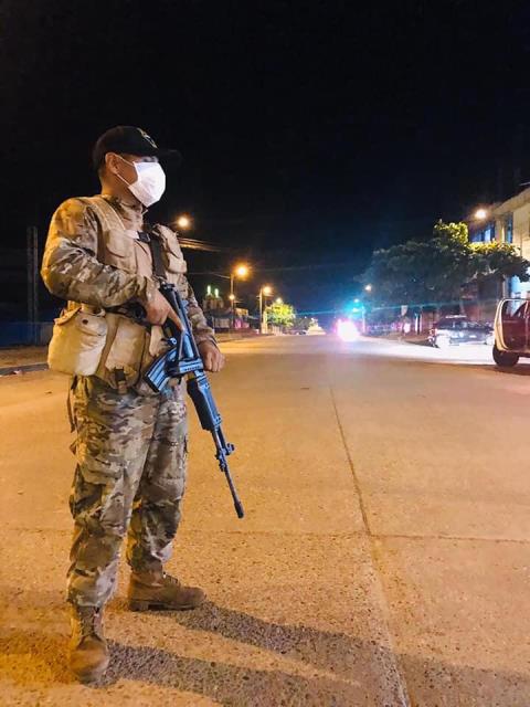 Efectivo del Ejercito del Peru en un Puesto de Control durante el Toque de Queda.