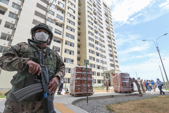 De acuerdo con información obtenida por defensa.com, una de las primeras medidas adoptadas fue la de apoyar al Seguro Social de Salud (ESSALUD) en la habilitación de la Villa Panamericana, que fue utilizada durante los Juegos Panamericanos y Para-Panamericanos 2019, en un Hospital Provisional que atenderá, en cuanto sea declarado operacional, a los posibles pacientes que sean afectados por el Covid-19. Se trata de un complejo de poco más de 20,000 m2, ubicado al sur de Lima en Villa El Salvador, que alberga 7 torres de 19 pisos, cada uno de los cuales tiene 8 departamentos de 3 dormitorios y 2 baños, con lo cual toda la Villa Panamericana tiene una capacidad para alrededor de 3,000 camas. A esto se suman, dos Bases Modulares que vienen siendo implementadas por Batallón de Ingeniería de la Fuerza de Infantería de Marina, una frente al Centro Médico Naval Cirujano Mayor Santiago Távara y la otra en el Liceo Naval Contralmirante Montero, mismas que cuando entren en operación reforzaran los dispositivos sanitarios y la capacidad hospitalaria.