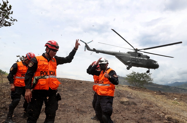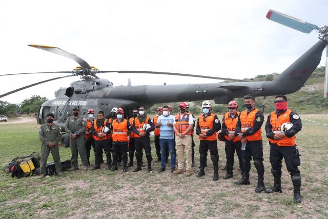 Efectivos de la Brigada de Rescate de la Policia Nacional transportados a la zona de operaciones a bordo de un Mi-171Sh del Grupo Aereo N° 3.