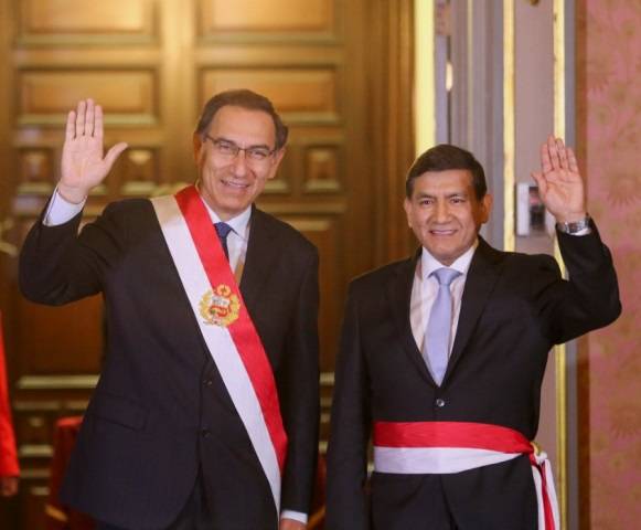 El general PNP (r) Carlos Morán Soto juramento ante el Presidente de la República, Martín Vizcarra Cornejo, como nuevo Ministro del Interior, en reemplazo de Mauro Medina Guimaraes, quien se desempeñó en el cargo desde el 2 de abril hasta el 17 de octubre del 2018 y renunció tras la escandalosa fuga del exjuez supremo Cesar Hinostroza Pariachi, acusado de liderar la organización criminal “Los Cuellos Blancos del Puerto”.
