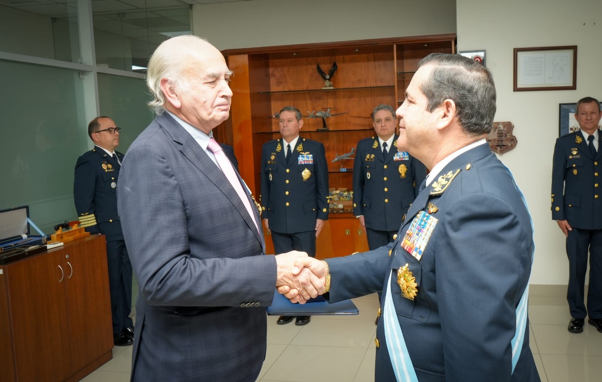 Javier Taibo junto al General del Aire Carlos Enrique Chávez Cateriano, Comandante General de la Fuerza Aérea del Perú