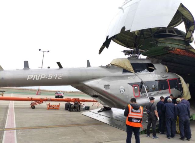 A bordo de un Antonov An-124 Ruslan arribaron al Perú los dos helicópteros de transporte Mi-171Sh Hip H adquiridos por el Ministerio del Interior (MININTER) a fines de 2019 - en el marco del Programa de “Mejoramiento de las Operaciones Tácticas Aéreas de la Dirección de Aviación Policial en el Ámbito Oriental del Perú”, Código SNIP N° 269969 - a la Empresa Unitaria Estatal de Comercio Exterior - Belspetsvneshtechnika (Republica de Bielorrusia) vía un contrato cifrado en 43,7 millones de dólares.