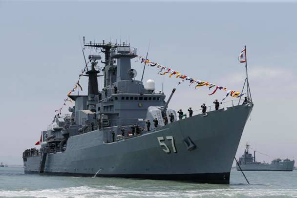·Fragata Misilera BAP Bolognesi (FM-57). Se aprecia el Radar Kronos-ND y uno de los Sistemas de Proteccion MASS (Multi- Ammunition Softkill System).