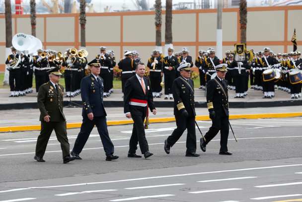 La ceremonia concluyo con un desfile en el que participaron batallones de cadetes de la Escuela Naval (ESNA), del Centro de Instrucción Técnico Naval (CITEN) y de la Escuela Nacional de Marina Mercante “Miguel Grau”, así como Destacamentos de las Fuerzas de Infantería de Marina y de Operaciones Especiales (COMFOES), y de la Dirección General de Capitanías y Guardacostas (DICAPI). A estos se sumaron, entre otros, Jeeps KIA KM-420 (4x4), camiones Beiben 2528 y KIA KM2500 (6x6) y vehículos blindados LAV II Caimán (8x8) y BMR-600. (Alejo Marchessini, Corresponsal de Grupo Edefa en Lima).