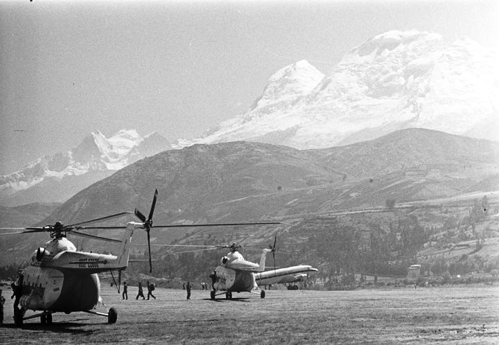 El 31 de mayo de 1970, un terremoto de 7,5 grados se registró frente a la costa de Ancash, unos 480 km. al Norte de Lima, causando más de 70.000 muertos y una devastación sin precedentes. La entonces Unión de Repúblicas Socialistas Soviéticas (URSS) se sumó a un esfuerzo multinacional y tendió un impresionante puente aéreo utilizando aviones Antonov An-12 “Cub” y An-22 “Antei” (Cock) a fin de movilizar más de 60 ton. ayuda humanitaria: víveres, ropa y medicinas, así como un hospital de campaña con 200 camas de capacidad, más de 100 casas prefabricadas, alimentos e insumos médicos, un número indeterminado de camiones KrAZ y 4 helicópteros de transporte Mi-8T “Hip C”.