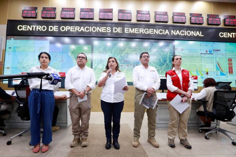 La Presidenta del Perú, Dina Boluarte, a poco de concluir la sesión del Consejo de Ministros, que se realizó en la sede del Centro Nacional de Emergencia (COEN) en Chorrillos por la crisis que están provocando el ciclón Yaku, aseguró que el Ministerio de Economía y Finanzas (MEF) “otorgará un presupuesto al Ministerio de Defensa para la compra de helicópteros”.