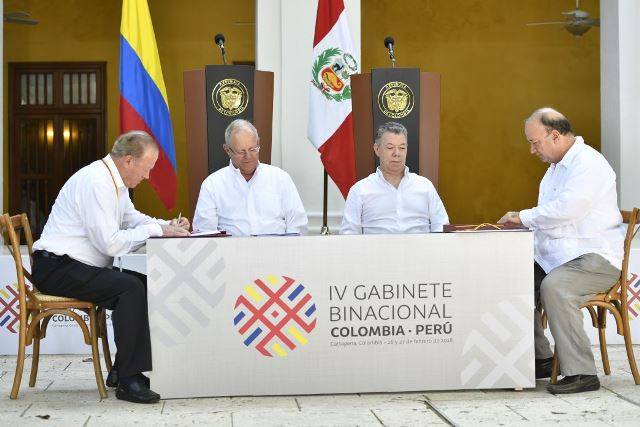 Los ministros de Defensa del Perú, Teniente General FAP (r) Jorge Kisic Wagner, y de Colombia, Luis Carlos Villegas Echeverri, suscribieron un Memorando de Entendimiento sobre Cooperación en Defensa y Seguridad entre ambos países. La firma de este documento tuvo lugar durante el Encuentro Presidencial y IV Gabinete Binacional Perú–Colombia, celebrado en la ciudad de Cartagena, y presidido por los Presidentes Pedro Pablo Kuczynski y Juan Manuel Santos. La cooperación comprenderá, entre otros, la planificación y ejecución de operaciones militares coordinadas en la región de fronteras, acciones humanitarias y cívico-sociales para atender a las poblaciones fronterizas, operaciones de control del espacio aéreo, combate al tráfico de armas y de drogas, y la minería ilegal, así como intercambio de información en ciberdefensa, educación militar, investigación académica e innovación tecnológica.