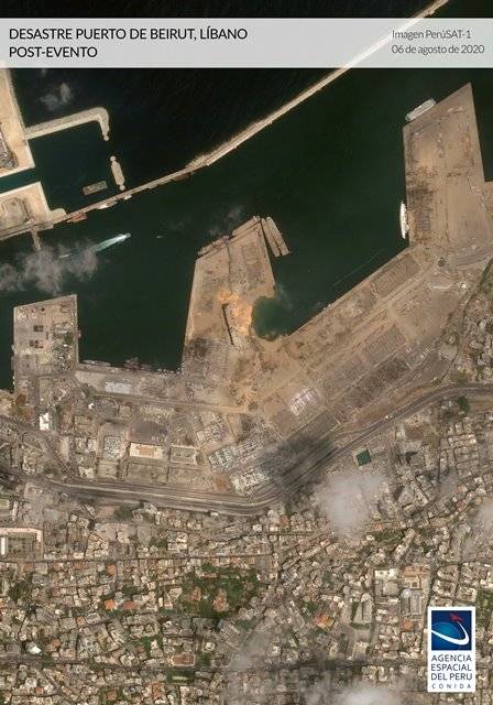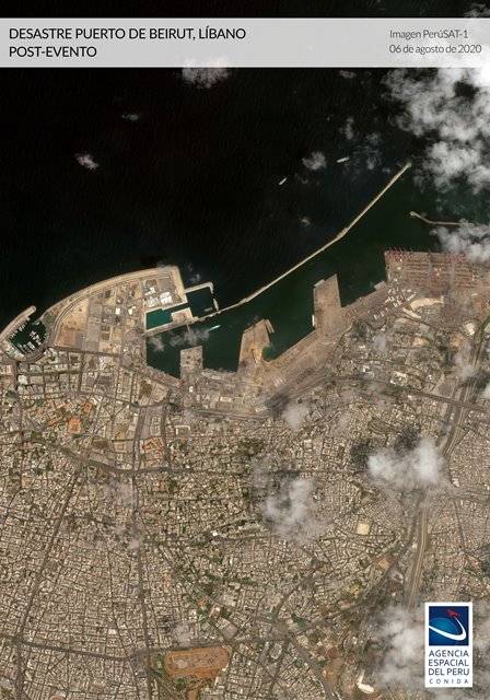 La Agencia Espacial del Perú (CONIDA) ha mostrado una serie de impresionantes imágenes obtenidas por el satélite de observación Perú-SAT, donde se aprecia con abrumadora claridad los efectos de la devastadora explosión que afecto Beirut el pasado 4 de agosto y dejó un saldo de más de 140 muertos, miles de heridos y un número indeterminado de desaparecidos.