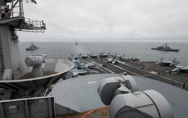 El Ala Aérea del USS George Washington es la CVW-2, acantonada en la Estación Aeronaval de Leemore (California), la cual incluye a los Escuadrones de Caza y Ataque VFA-2 Bounty Hunters, VFA-34 Blue Blasters, VFA-137 Krestels y VFA-192 Golden Dragons con los Boeing F/A-18E/F Super Hornet. Además, encuadra a los Escuadrones de Guerra Electrónica VAQ-135 Black Ravens que opera con los F/A-18G Growler, de Alerta Temprana VAW-113 con Grumman E-2C Hawkeye, de Soporte Logistico VRC-30 Provider con C-2A Greyhound, y de Helicópteros HSC-4 Black Knigths y HMS-78 Blue Hawks con los Sikorsky MH-60R/MH-60S Seahawk. (Alejo Marchessini, Corresponsal de Grupo Edefa en Lima).