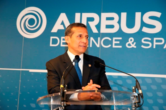El Presidente del Perú, Ollanta Humala, y el Ministro de Defensa, Jakke Valakivi, visitaron las instalaciones de Airbus Defence and Space en Toulouse, donde ha tenido la oportunidad de ver los progresos realizados en la construcción del primer satélite de observación de la Tierra del Perú, PerúSAT-1.François Auque, Responsable de Space Systems acompañó al Presidente Humala durante la visita a las instalaciones. El Presidente peruano pudo ver la plataforma y el instrumento que dotará al satélite la potente capacidad de observación con resolución submétrica.