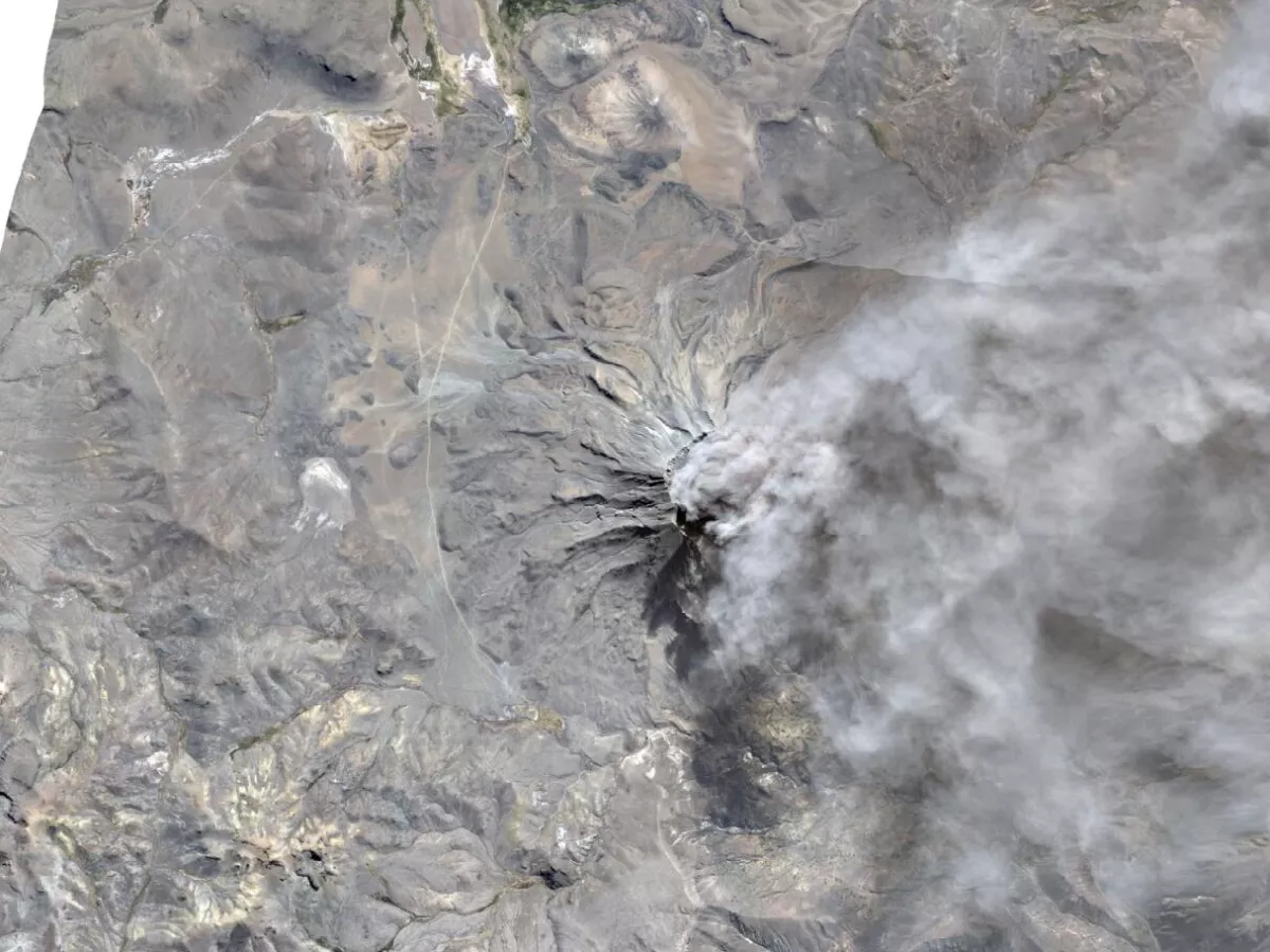 Imagen tomada con el satélite Perú-SAT1 del volcán Ubinas tomada el 3 de julio de 2023.