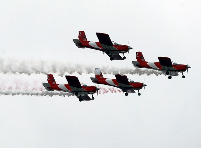 Los Moravan Zlin Z-242L de la Escuadrilla Acrobática “Bicolor” estrenaron, en el Día de la Fuerza Aérea del Perú y en el Desfile Militar por el Bicentenario de la Independencia, sus nuevas libreas de color en rojo y blanco que lucirán durante sus exhibiciones y demostraciones aéreas a lo largo del país.