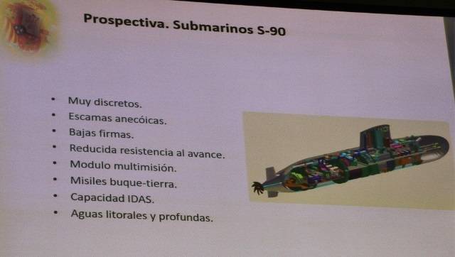 Los nuevos submarinos S-90 potenciarán las altas capacidades oceánicas, previstas en los S-80 Plus, aunque también tendrán una gran eficacia en aguas litorales. El marino habló de una evolución de este submarino, basado en sistemas de la industria nacional, destacando los avances realizados por las empresas españolas en los sistemas de propulsión independiente o AIP (Air-Independent Propulsion), que se han diseñado para los S-80 Plus.