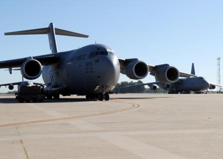 ·Aviones de transporte C-17 “Globemaster III” y C-5 “Galaxy”, los más grandes de la Fuerza Aérea estadounidense, en la pista de aterrizaje de Morón el pasado 31 de mayo.