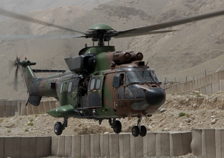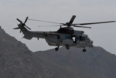 ·El 31 de julio 2012, Francia entregó la FOB Tora, en el valle de Surobi, al Ejército afgano. Para apoyar en el repliegue de las tropas y equipos franceses desde aquella base se movilizaron varios helicópteros, como este EC725.