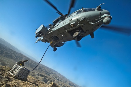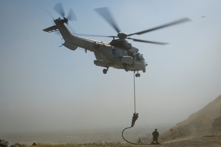 ·Despliegue de comandos del CPA-30 por soga rápida. En verano, en Afganistán, el calor y la altitud limitaban a 4 el número de pasajeros que puede embarcar un EC725.