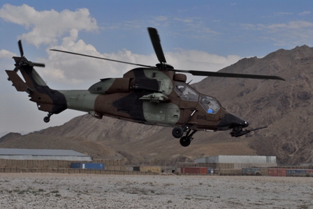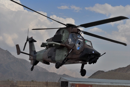 Tigre: El helicóptero de ataque EC665, mejor conocido como Tigre, recibió su bautismo del fuego en Afganistán. En los tres años de presencia en el seno del BATHELICO, tuvo oportunidad de demostrar la potencia de su planta motriz, al ser la única aeronave cuyas capacidades no se vieron significativamente afectadas por el calor y la altitud. Otra razón para ello fue que en la mayoría de las misiones voladas no embarcaba ningún tipo de armamento externo (lanzacohetes de 68 mm.). Su solo cañón de 30 mm. resultó suficientemente poderoso, además de preciso, para las acciones de apoyo táctico y escolta, por lo cual la autonomía seguía manteniéndose en 2 horas y media. Desde luego, de ser necesario, podía perfectamente despegar y volar con un par de lanzacohetes montados y su cañón plenamente provisto de municiones, aunque con tal carga su autonomía se veía reducida. El peso máximo al despegue fue incrementado de 6,1 ton. a 6,4 en Afganistán.