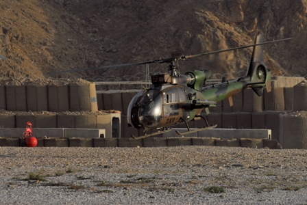 Gazelle: 5 SA342M Gazelle Viviane llegaron a desplegarse en Afganistán, donde realizaban misiones de reconocimiento, observación y apoyo táctico. Si bien el Gazelle puede llevar hasta 4 misiles antitanque HOT en Francia, en Afganistán sólo uno de estos podía ser montado, debido a las temperaturas elevadas y altitudes de operación. El HOT no se incorporaría en KAIA, para evitar alterar aún más las capacidades de vuelo ya muy limitadas del helicóptero en el asfixiante calor del verano afgano. El armamento se montaría en Nijrab, pues la altitud menor de la FOB permitía un despegue más fácil que en Kabul. Los SA342 enviados a Afganistán habían sido modificados, recibiendo nuevas palas de rotor principal, las mismas que el AS550 Fennec, lo cual les brindaba mayor sostenibilidad en vuelo. También habían visto su peso máximo al despegue incrementado desde 1.900 hasta 2.100 kg.