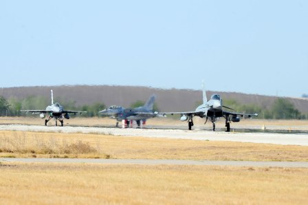 El pasado verano, durante el mes de julio, otra formación de F-16 de Emiratos pasó por Morón de la Frontera camino de Nellis, aunque a la vuelta, en agosto, los aviones árabes hicieron algo más que una escala en la base sevillana. Fruto de las cada vez mejores relaciones entre EAU y España y de los citados acuerdos de colaboración entre las fuerzas aéreas de ambos países, se desarrolló a finales del pasado agosto un ejercicio de entrenamiento avanzado entre los F-16 de la UAEAF y los Eurofighter del Ala 11, que tienen su nido en la mencionada BA de Morón.