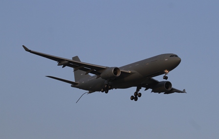 Este segundo aparato pasó en el verano por Toulouse, donde se pintó con el característico gris militar y las insignias militares de la UAEAF, volviendo a Getafe el 16 de agosto para continuar las pruebas. Por cierto, en el curso de éstas, el pasado mes de septiembre el aparato sufrió el percance de perder la percha de reabastecimiento sobre la provincia de Cáceres, pieza que se recuperó enseguida, aunque retrasará la entrega. Reseñamos finalmente que el tercer y último avión está en proceso de conversión y será completado antes de finalizar el año.