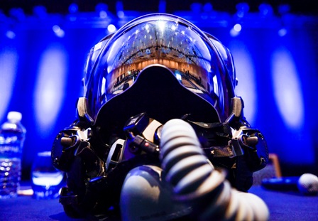 Foto: El casco de piloto de F-35: Aeronaves de combate son hoy en día complejas máquinas repletas de sensores e interconectadas (foto USAF).
