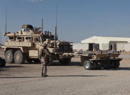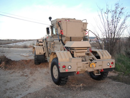·Un MRAP estadounidense dotado de sistemas de detección de EOD en Helmand, Afganistán (foto USMC).