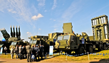 Además de diversos aviones, MAKS es también una vía de promoción de sistemas de defensa aérea. Es interesante que la cartera de Rosoboronexport en este tipo de equipos exceda la suma de pedidos de aeronaves. Este año, Almaz-Antey, especializada en este campo, presentó el nuevo complejo Vityaz (Warrior) S-350E de mediano alcance. El lanzador autopropulsado está equipado con 12 misiles 9M96. El puesto de mando es capaz de controlar hasta 32 misiles disparados simultáneamente, para impactar hasta 16 blancos aéreos o 12 balísticos.