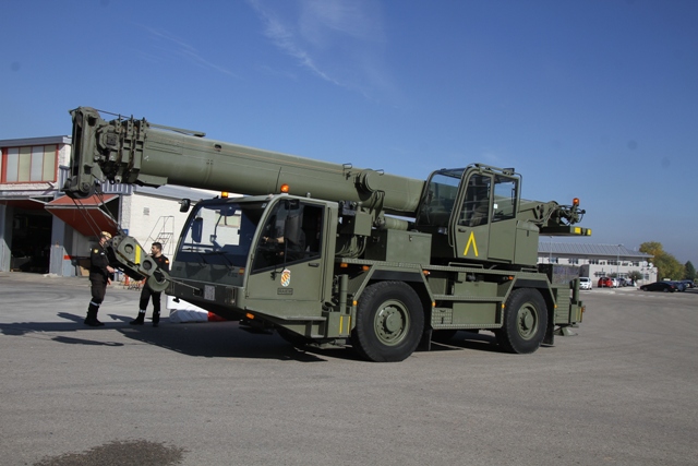 Foto: Una de las grúas Luna AT 35/32 que la UME usa para la elevación de cargas, así como para la recuperación y remolque de vehículos (foto Julio Maíz).