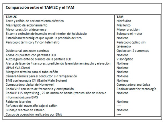 En diciembre de 2010 se firmó un convenio entre naciones a través del Ministerio de Defensa argentino y su similar de Israel. El mismo mes se rubrica el específico para la modernización de un prototipo del TAM 2C, que incorpora todas las mejoras que lo llevan al nivel de la tecnología absolutamente actual y permite prolongar su vida útil por lo menos por 15 años. Se realizó en el país con personal técnico israelí, pero con participación de la mano de obra local y talleres nacionales. El pacto comprende una carta intención para la realización de una serie en los talleres del Ejército y mediante el uso de 100 por ciento de mano de obra nacional y con cursos de adaptación.