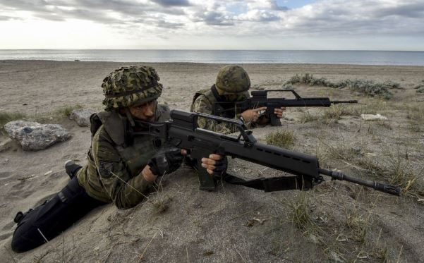 4-Tras infiltrarse por vía marítima, dos miembros de la Sección de Reconocimiento de la Bandera de Zapadores de la BRILEG, aseguran el perímetro. Foto; FUTER.
