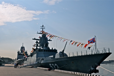 Los hitos de la Marina rusa fueron la corbeta Boiky, del Proyecto 20380, con configuración furtiva, y el pequeño buque artillero Mahachkala, del Proyecto 21630, con el lanzador de cohetes múltiples (MLRS) Grad-M. Entre los otros navíos rusos presentados en el puerto estaban el de desembarco de colchón de aire Serna D-67, del Proyecto 11771, la motora contra sabotajes Grachonok (Proyecto 21980), los patrulleros oceánicos, u OPV (Off-shore Patrol Vessel) Sobol y Mangust (12200 y 12150, respectivamente, los buques de vigilancia hidrográfica Vaiygach, GS-525 y MGK-403. Los buques invitados estuvieron representados por el submarino de la Real Marina holandesa Dolfijn y la fragata Evertsen y el polaco ORP Arctowski.