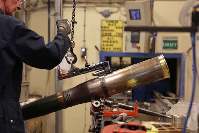 Foto: Un proyectil de grueso calibre durante el proceso (NAMMO)