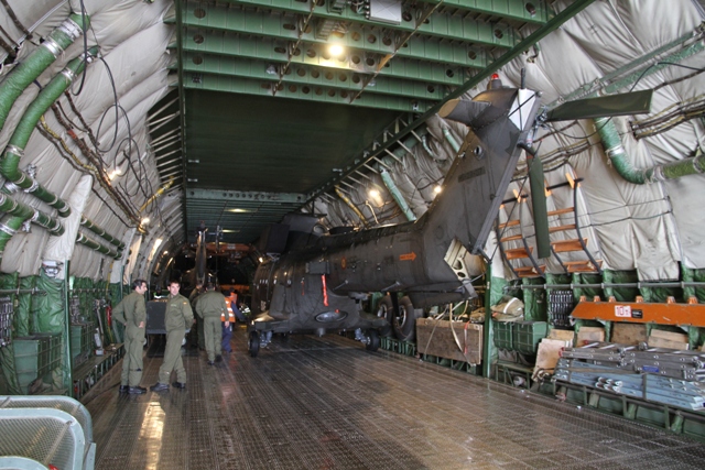 Foto: Un “Cougar” en el interior de la bodega del An-124 (foto Julio Maíz).